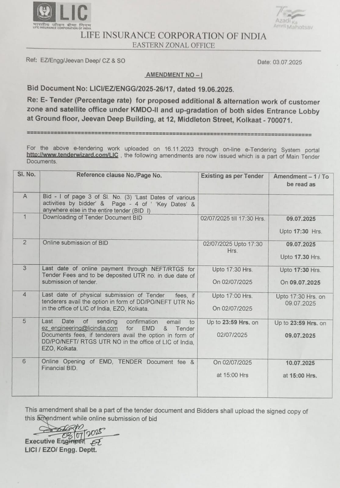 E-TENDER FOR PROPOSED ADDITIONAL AND ALTERATION WORK OF CUSTOMER ZONE AND SATELLITE OFFICE UNDER KMDO-II AND UP-GRADATION OF BOTH SIDES ENTRANCE LOBBY AT GROUND FLOOR, JEEVAN DEEP BUILDING, AT 12, MIDDLETON STREET, KOLKATA-700071