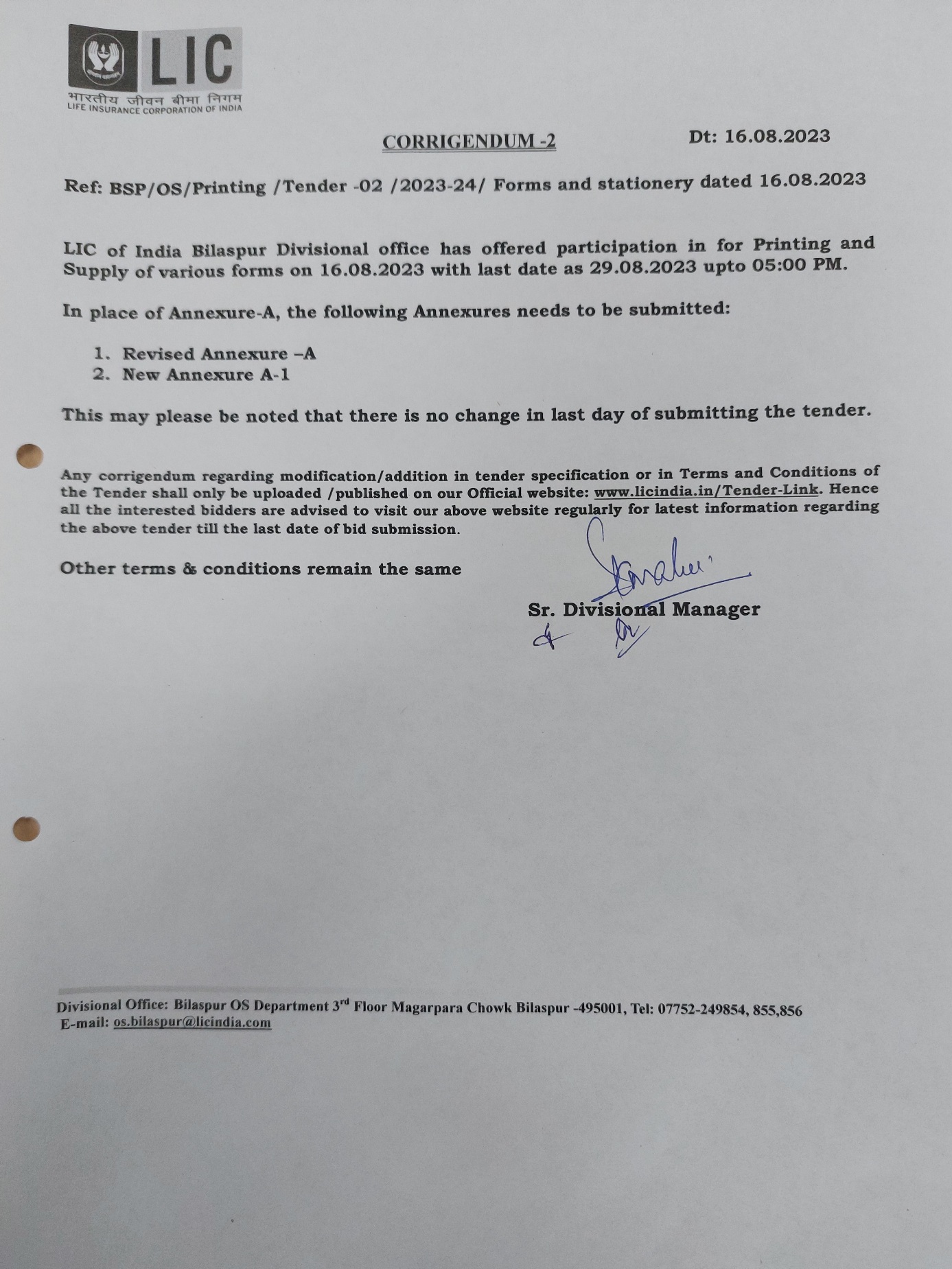 | Tender Document 5 | Revised Annexure A and New Annexure A-1. |