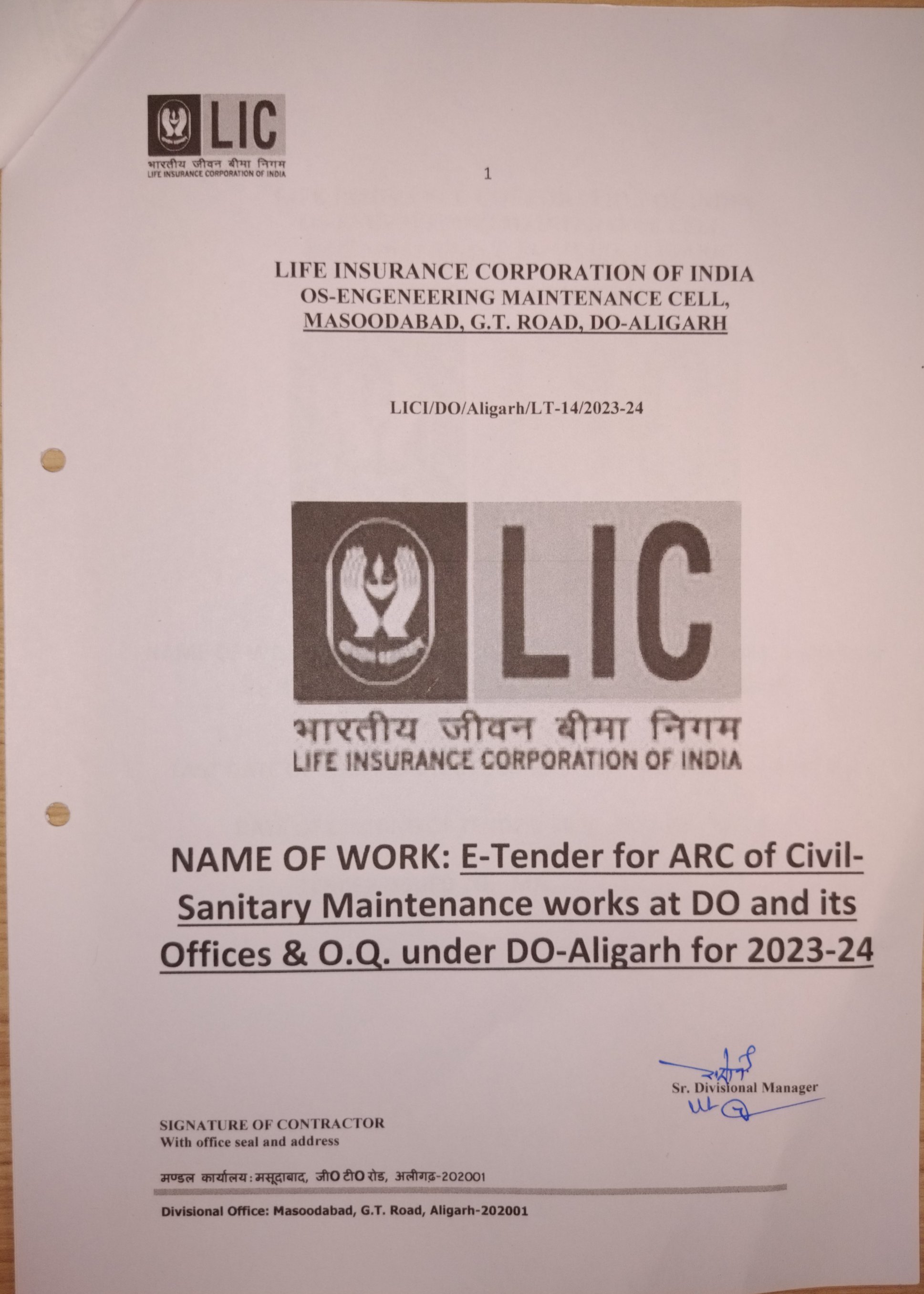 Re-"Notice for ARC for Civil works of Divisional Office Aligarh"