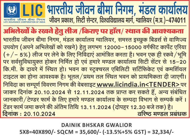 TENDER FOR SPACE/HALL ON LEASE RENT FOR KEEPING POLICY RECORDS