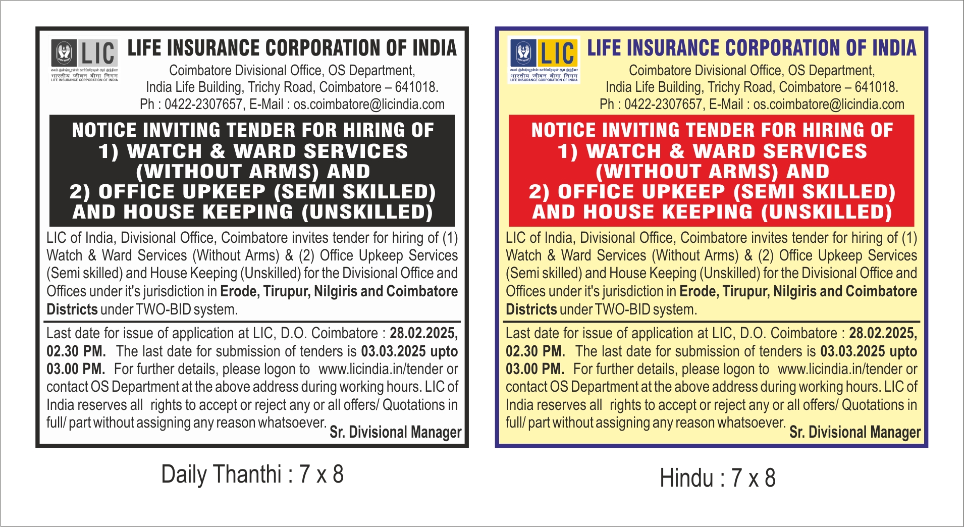 | Tender Document 2 | Hindu & Daily Thanthi Drafts |