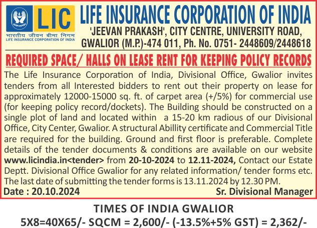 TENDER FOR SPACE/HALL ON LEASE RENT FOR KEEPING POLICY RECORDS