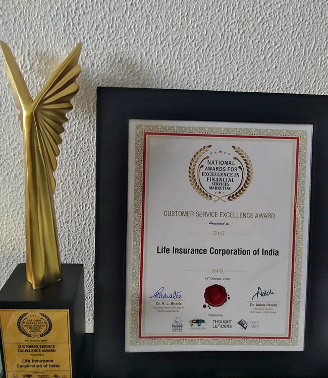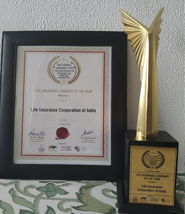 वित्तीय सेवाओं में उत्कृष्टता के लिए राष्ट्रीय पुरस्कार लाइफ इंश्योरेंस कंपनी ऑफ द ईयर 2020