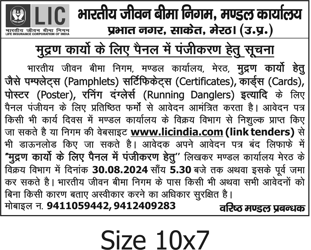 Empanelment of firms for Sales department related Printing Works- LIC Meerut Divison