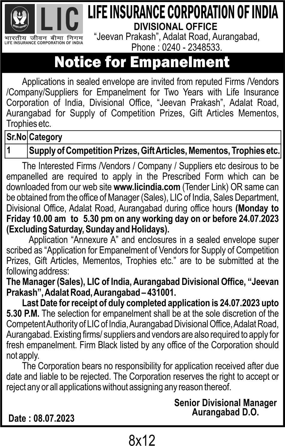 Notice for Empanelment of Suppliers/ Vendors/ Firms/ Companis