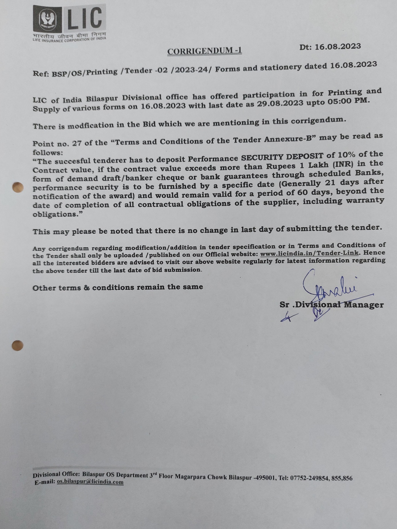 PRINTING OF FORMS,ENVELOPS AND REGISTERS, OUR 12 EMPANELLED VENDORS UNDER BILASPUR DIVISION ONLY