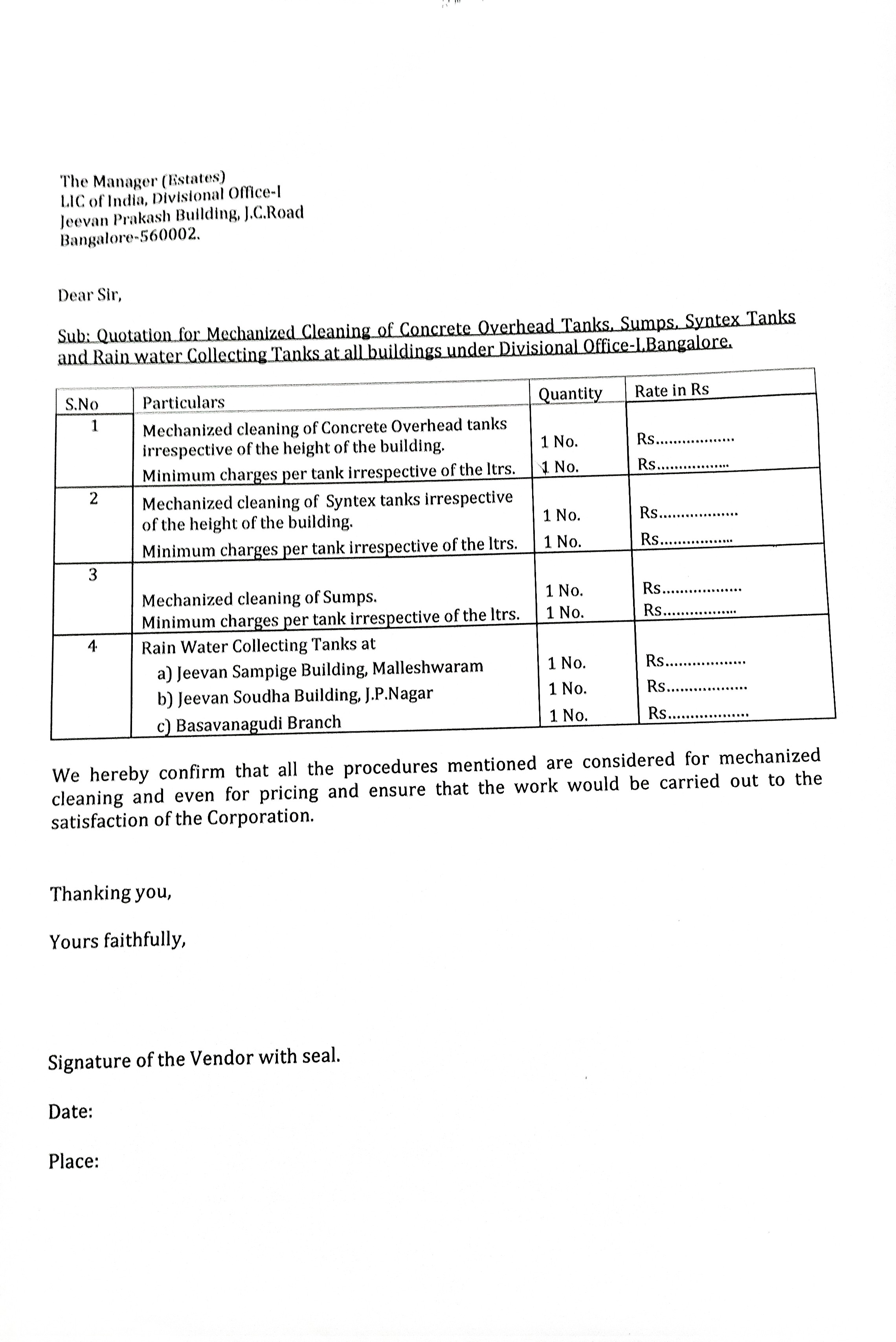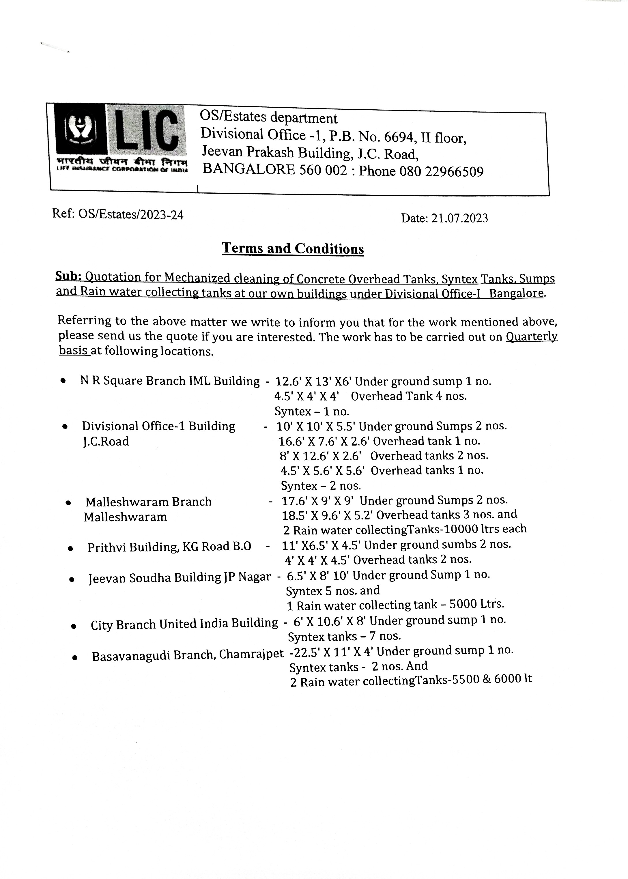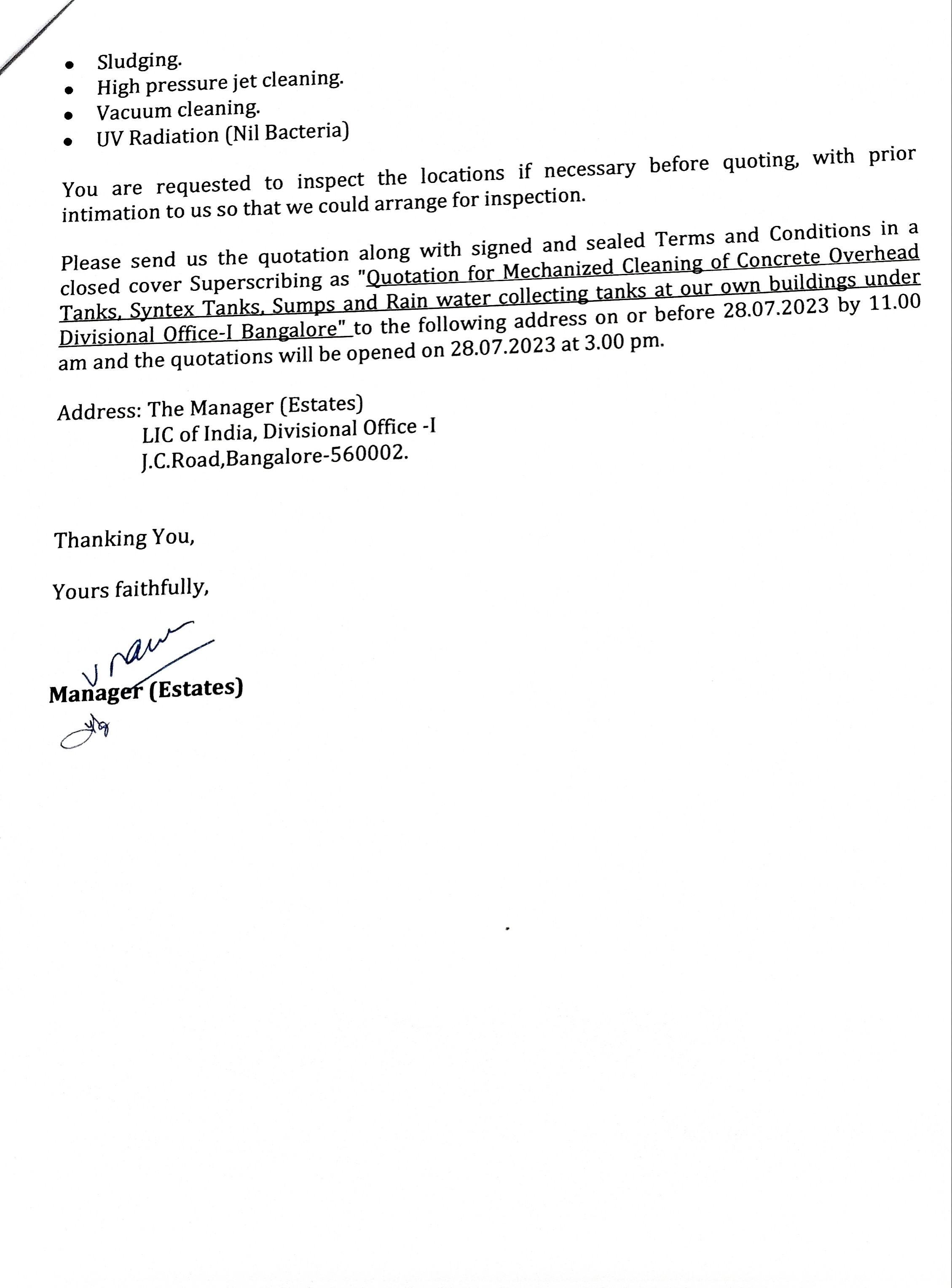 Tender for Mechanized cleaning of Tanks and sumps